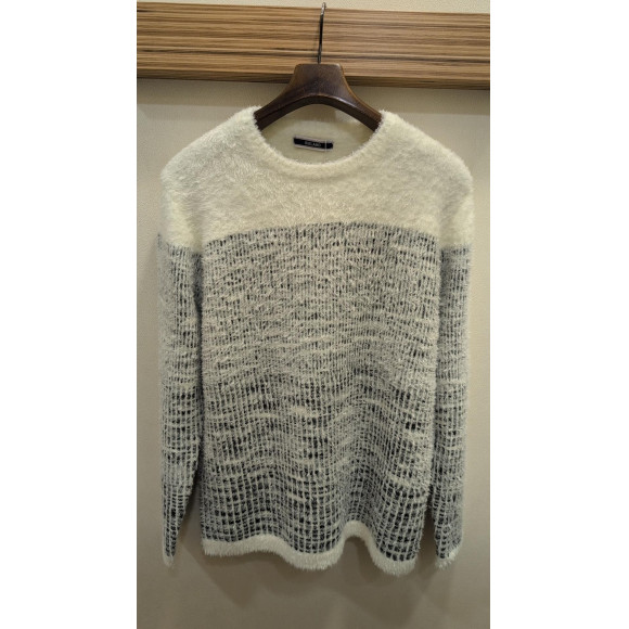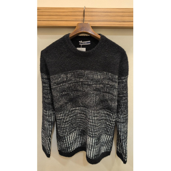 A crew neck pullover knit with a gradation stripe pattern that attracts your eyes.